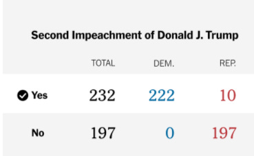 But it was overshadowed by the fact that 197 Republicans — 93 percent of the House GOP — voted against impeaching their Orange Leader, despite experiencing his sedition at first hand.