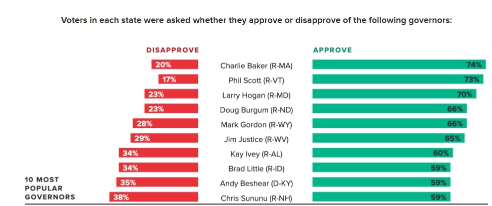 A new Morning Consult analysis finds that the nation’s three most popular governors are all Republicans from deeply blue states.