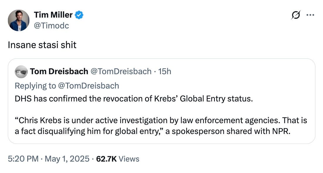 But that would be wrong! Waltz served 101 days as Trump’s first national security advisor, far outstripping his first-term predecessor, Michael Flynn, who was booted after 22 days. It’s a new era of relative stability in Trump World!
