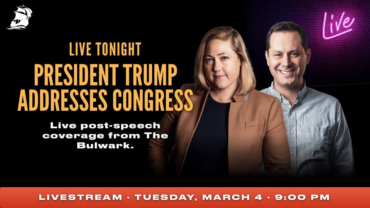 Watch President Donald Trump's joint address to Congress (or don’t!), then stay-tuned as The Bulwark's Sarah Longwell, Sam Stein and Lauren Egan give their immediate reactions. Join other Bulwark readers in the comments!
