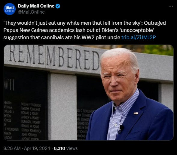 Also last night, all four Democrats joined five Republicans on the House Rules Committee to approve the rule for bringing the foreign aid package for Ukraine, Israel, and Taiwan to the House floor, by a vote of nine to three. This seems to have been the first time in decades when the majority party depended on minority support to approve a rule. And of course Democratic votes will be needed to win today’s vote on the floor to approve the rule, and then to pass the legislation tomorrow.