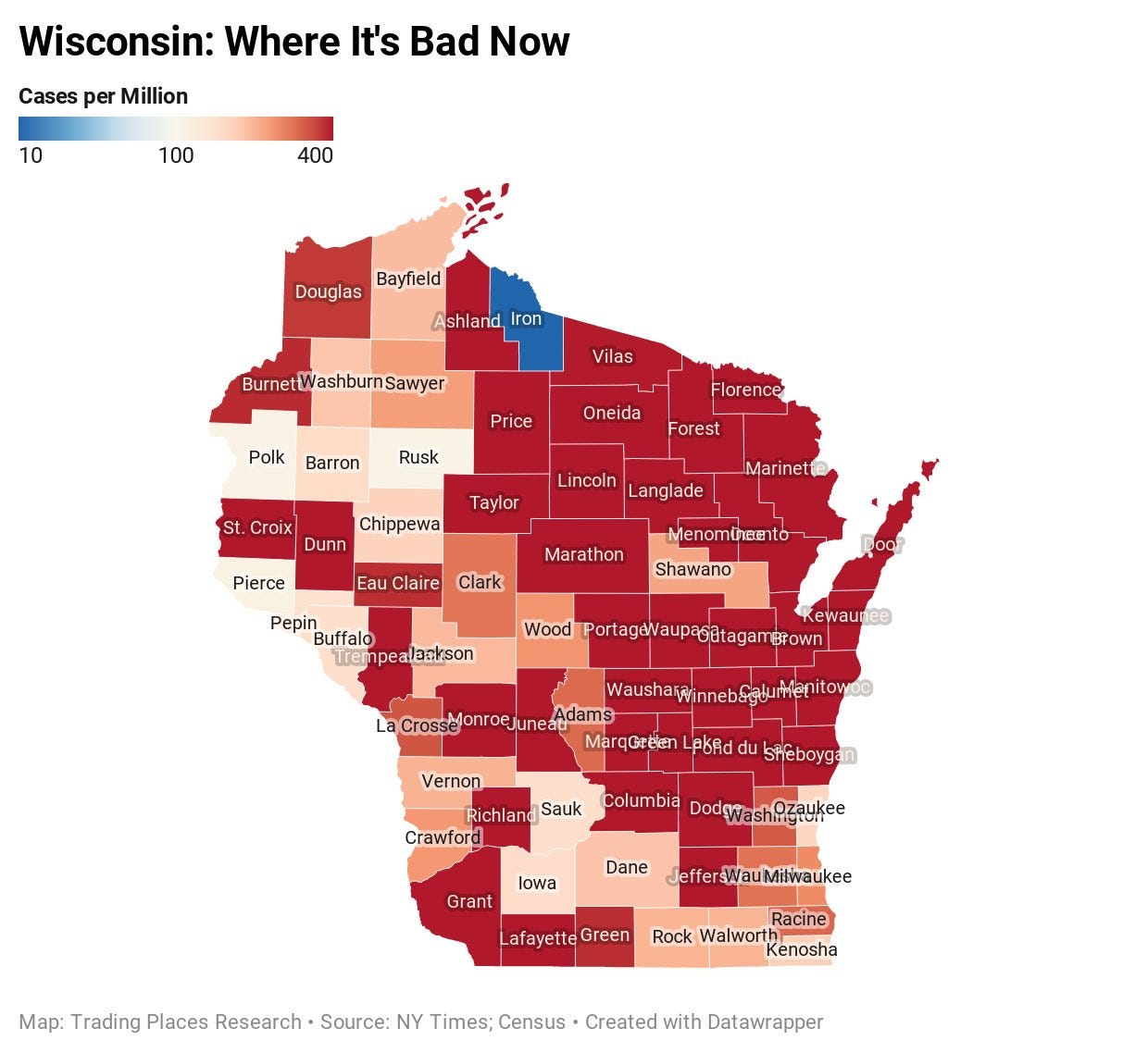 Inevitably, we are all focused on Washington, D.C. and the toll the disease is taking on the connected and the powerful. But let’s look at what is happening in Wisconsin, where we are also seeing the fallout from Trump’s cultivated recklessness.