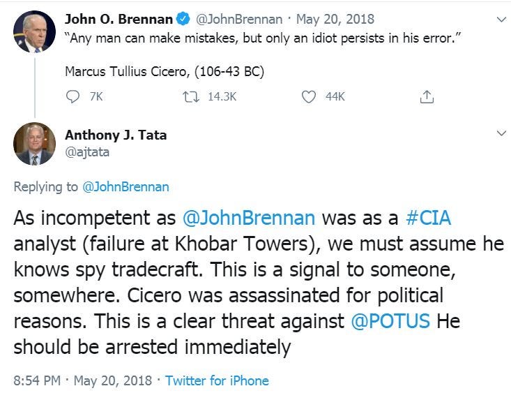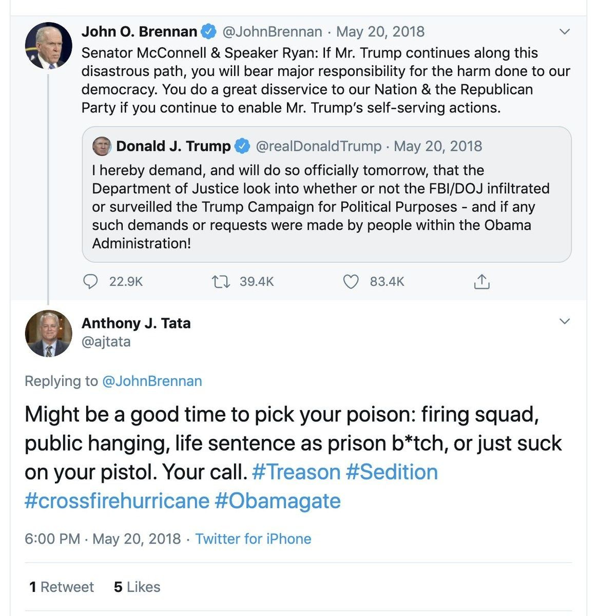 Tata has never had a civilian job in national security. (Since retiring from the Army, he has, in addition to his gig on Fox News, been a school administrator and the transportation secretary for North Carolina.)