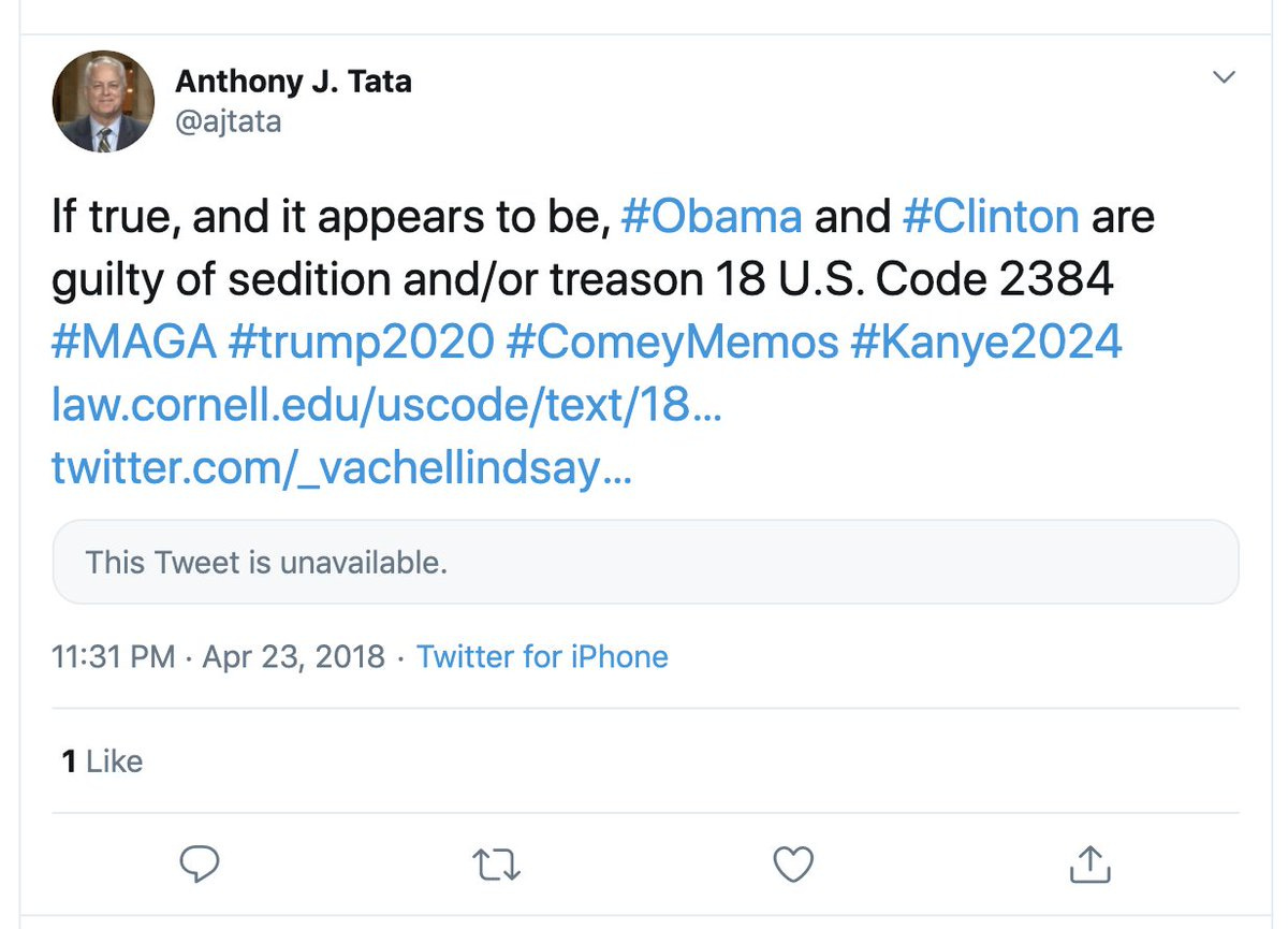 Tata has also called Rep. Maxine Waters a “vicious race baiting racist” and Speaker Nancy Pelosi a “violent extremist,” and he tweeted that Don Lemon, a black CNN anchor, was on the “the liberal plantation.”
