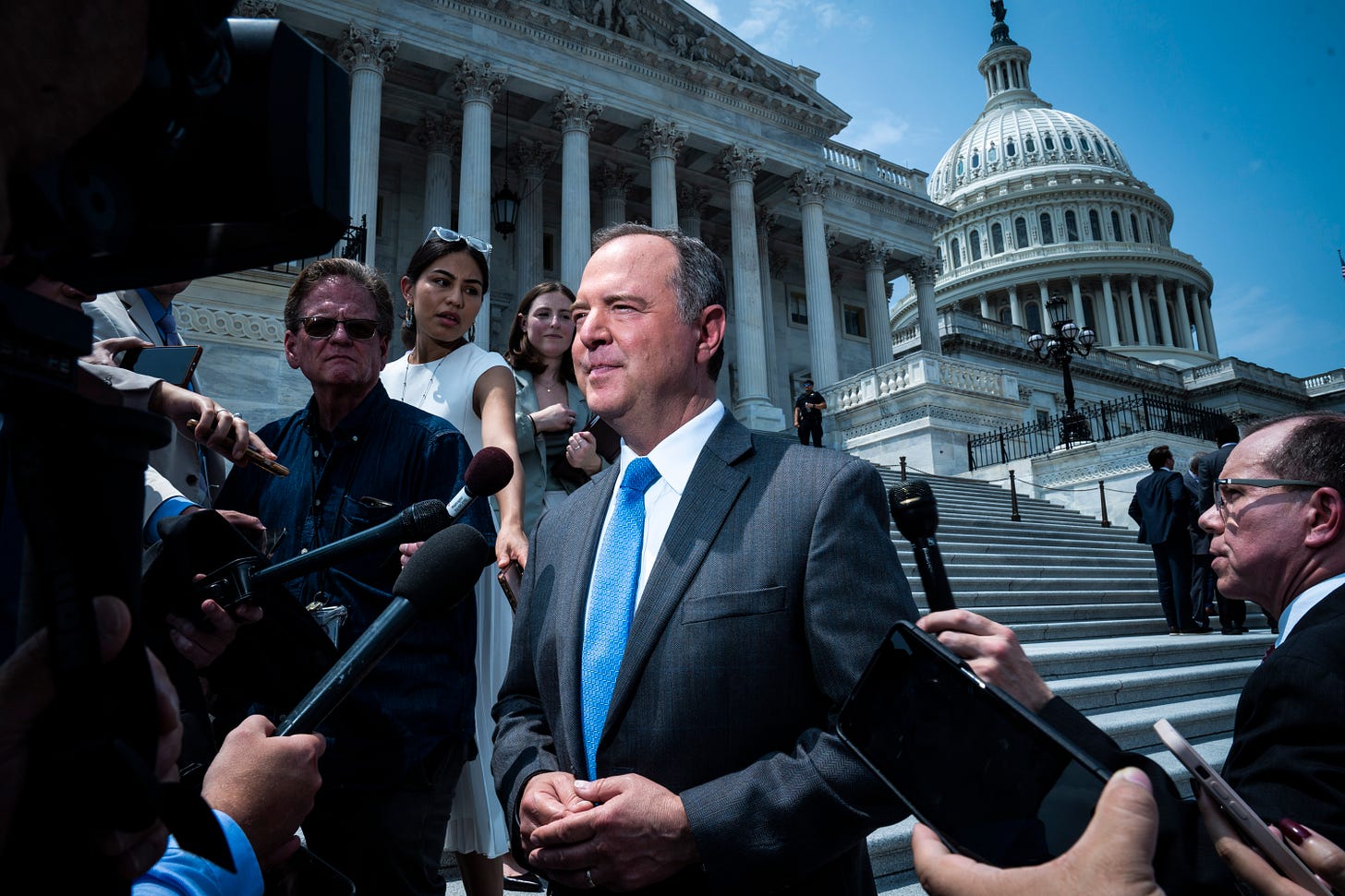 The California Democrat is known best, and reviled in MAGA quarters, for his lead role in the first Donald Trump impeachment inquiry and trial, and as a member of the House January 6th Committee. House Republicans have censured him and banished him from the Intelligence Committee he used to chair. Trump calls him “pencil neck.”