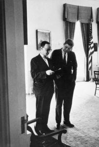 Arthur Schlesinger Jr. and President John F. Kennedy in the Oval Office on July 26, 1962. (Photo by Cecil Stoughton, courtesy of the JFK Presidential Library and Museum.)
