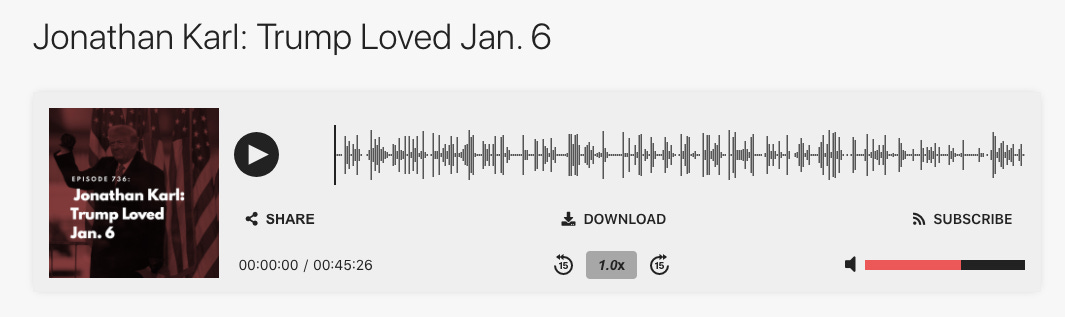 Yes, there was a riot at the Capitol, but keep your eye on the ball: Trump tried to destroy American democracy. He literally tried to steal the election. Jonathan Karl joins Charlie Sykes on today's podcast.