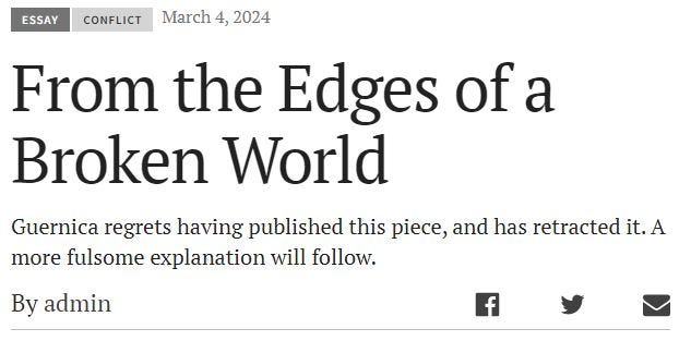 In the end, regardless of intent, it’s hard to dispute that the Guernica litmus test is antisemitic in its effect, since it would deplatform all but a minuscule proportion of the world’s Jewish population.