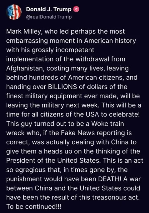 In a better society, quislings like the strange sodomy-promoting General Milley would be hung. He had one boss: President Trump, and instead he was secretly meeting with Pelosi and coordinating with her to hurt Trump. That is, when he wasn’t also secretly coordinating and sharing intelligence with the Chinese military. How this traitor remains in office is a question we need answered.