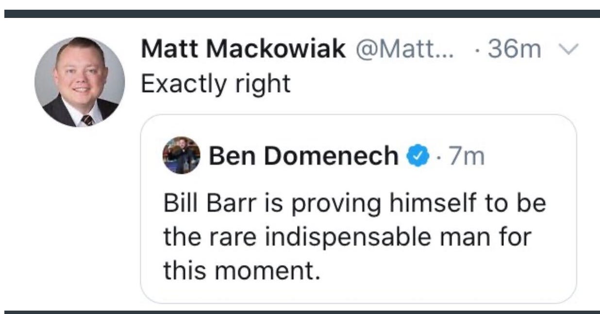 So here is the question: What was going through Barr’s mind last May and then again today? It was an easy question for anyone who has taken the oath to protect the nation.