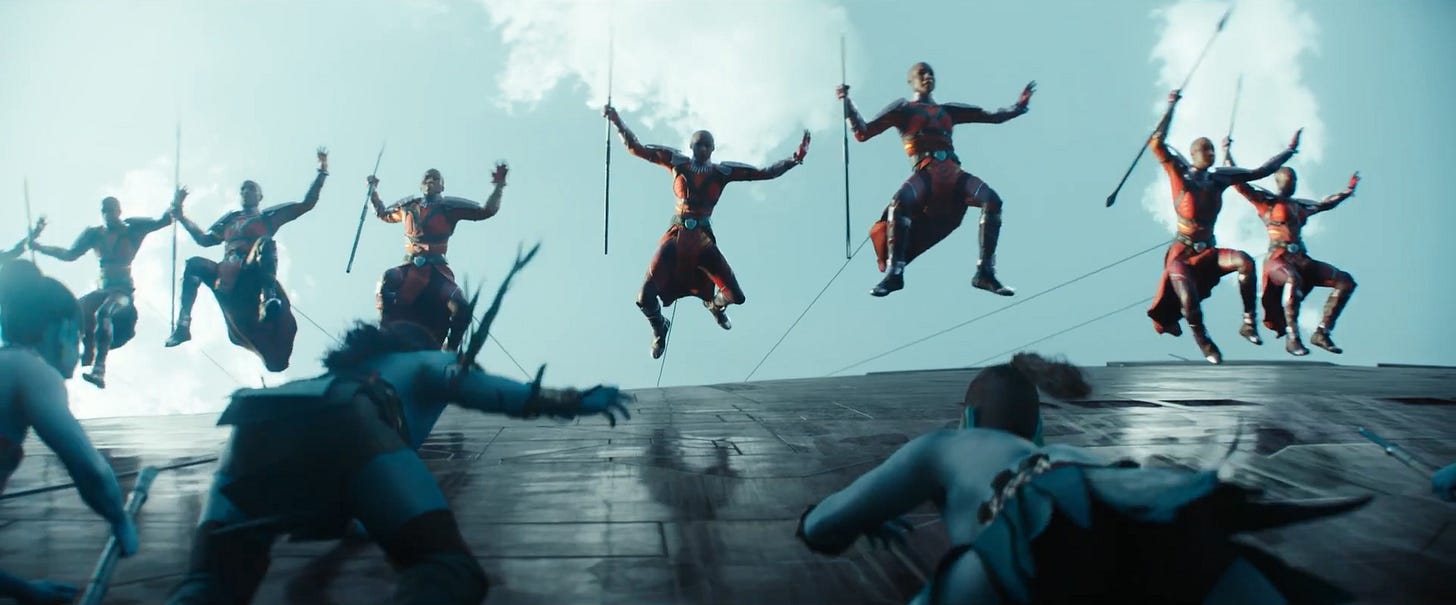 Wakandans vs. Talokans. (Photo courtesy of Marvel Studios. © 2022 Marvel.)