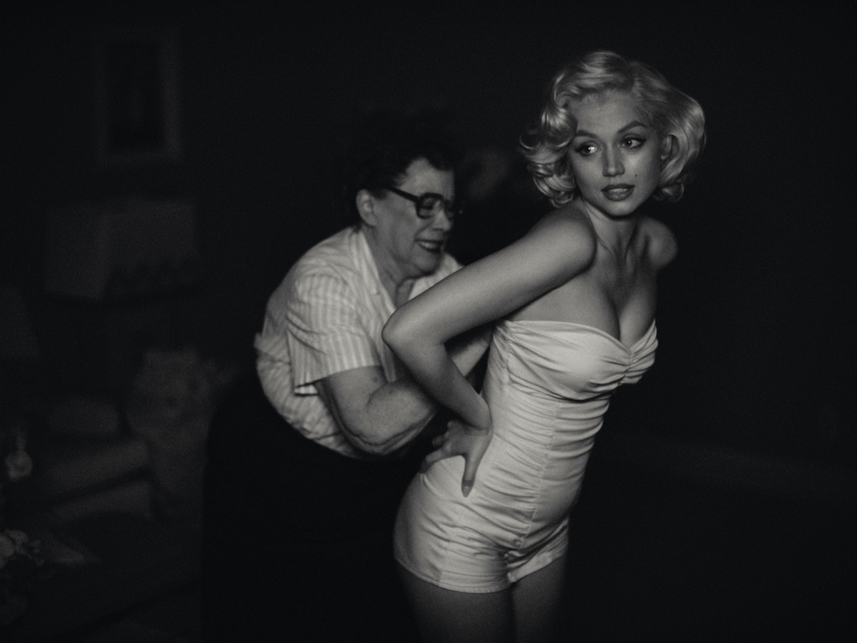In Blonde, fame feels like something that almost happens to Norma Jean Baker, aka Marilyn Monroe (Ana de Armas), a narrative reinforced by Dominik’s annoying decision to continually monkey with aspect ratios and color formats (black and white, oversaturated, etc). Dominik’s choice here is the sort of artistic hubris that only makes sense if you know, externally, that he’s changing the onscreen image’s shape and stock in an effort to replicate photos and films actually taken of Norma Jean during her life at the moment the film is portraying; sans that context, it’s merely aggravating and showy.