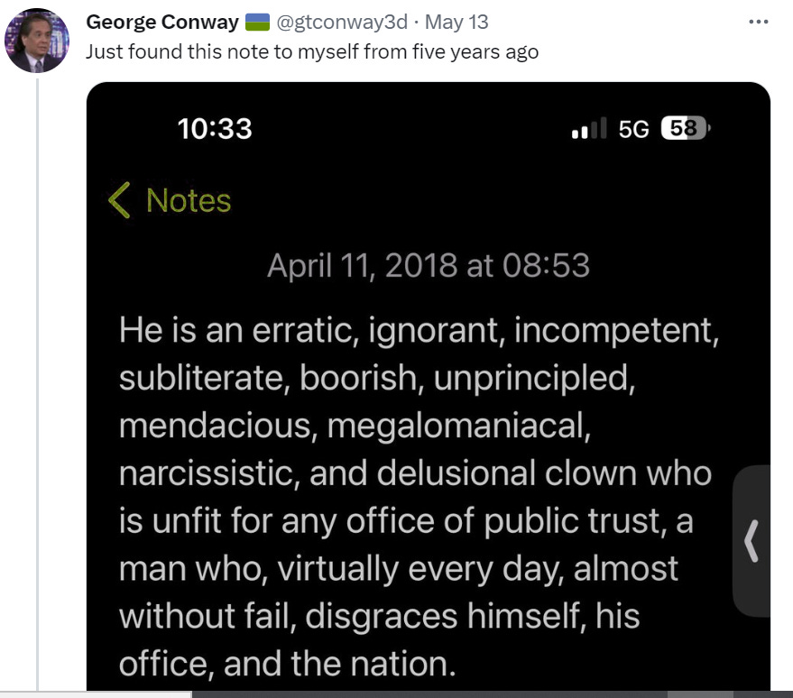 Then there was Nikki. “Nikki Haley dodges chance to condemn Trump for E. Jean Carroll sex abuse verdict.”