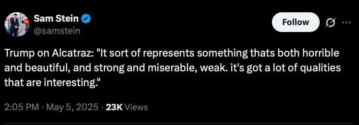 On the other hand, this more humane policy plainly isn’t intended to assuage migrant fears as much as it is to channel them. Part of the point of the White House’s maximalist ICE propaganda has been to keep illegal immigrants in a constant state of high alarm, softening them up for this kinder, friendlier face of “temporary ICE deprioritization.” You sure don’t want ICE to break your car window and drag you into a van in front of your crying daughter, do you? Much better to settle your affairs peaceably—and hey, here’s a stipend for your trouble.