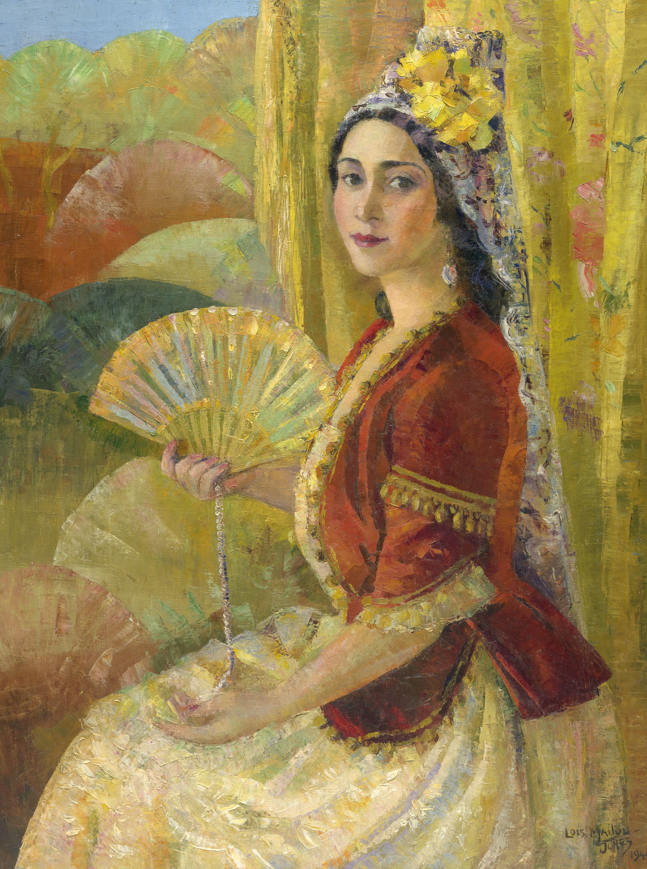 African-American opera singer Lillian Evanti left America for Europe in 1924, seeking opportunities denied her by racial discrimination in the United States. She became the first African American to perform with grand opera companies in Europe and achieved such renown that the State Department made her a goodwill ambassador in the 1940s and ’50s. Her portrait by Loïs Mailou Jones portrays her in a favorite role, as Rosina in Rossini’s The Barber of Seville.
