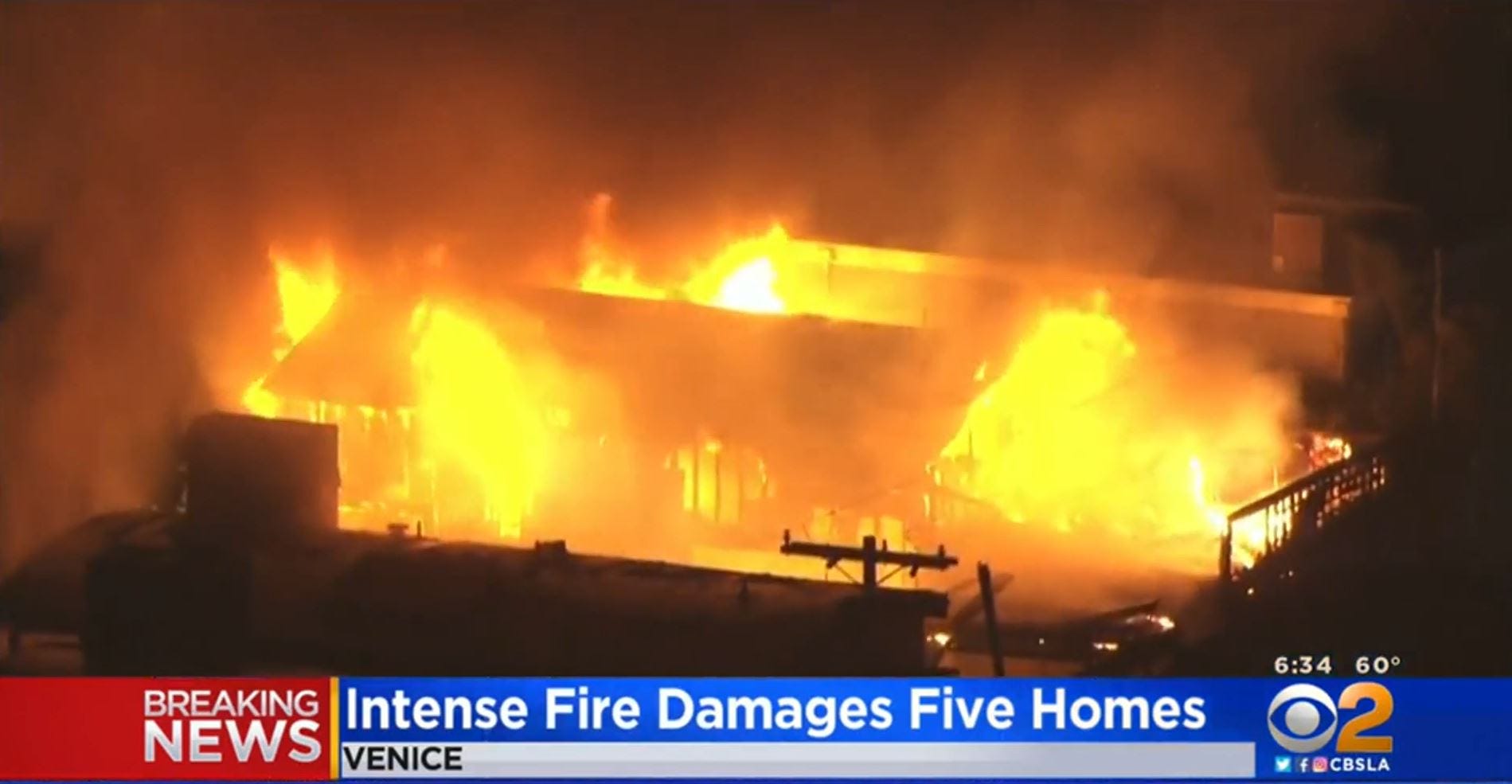 MORE THAN 100 FIREFIGHTERS were dispatched to battle the Venice Canals fire, according to a short statement from the Los Angeles Fire Department, extinguishing the raging conflagration in an hour and twenty minutes. On the first anniversary of the blaze, there is still no official word on what caused it: The LAFD told me an arson report is not yet finished. But Marty, Irma, and their neighbors have little doubt about what happened that night in “the picturesque, upscale but homeless-plagued Venice Canals,” as Marty described their neighborhood. The couple summed it up bluntly in the title of an eleven-minute video they made about the catastrophe: “Homeless People Burned Our House Down.”