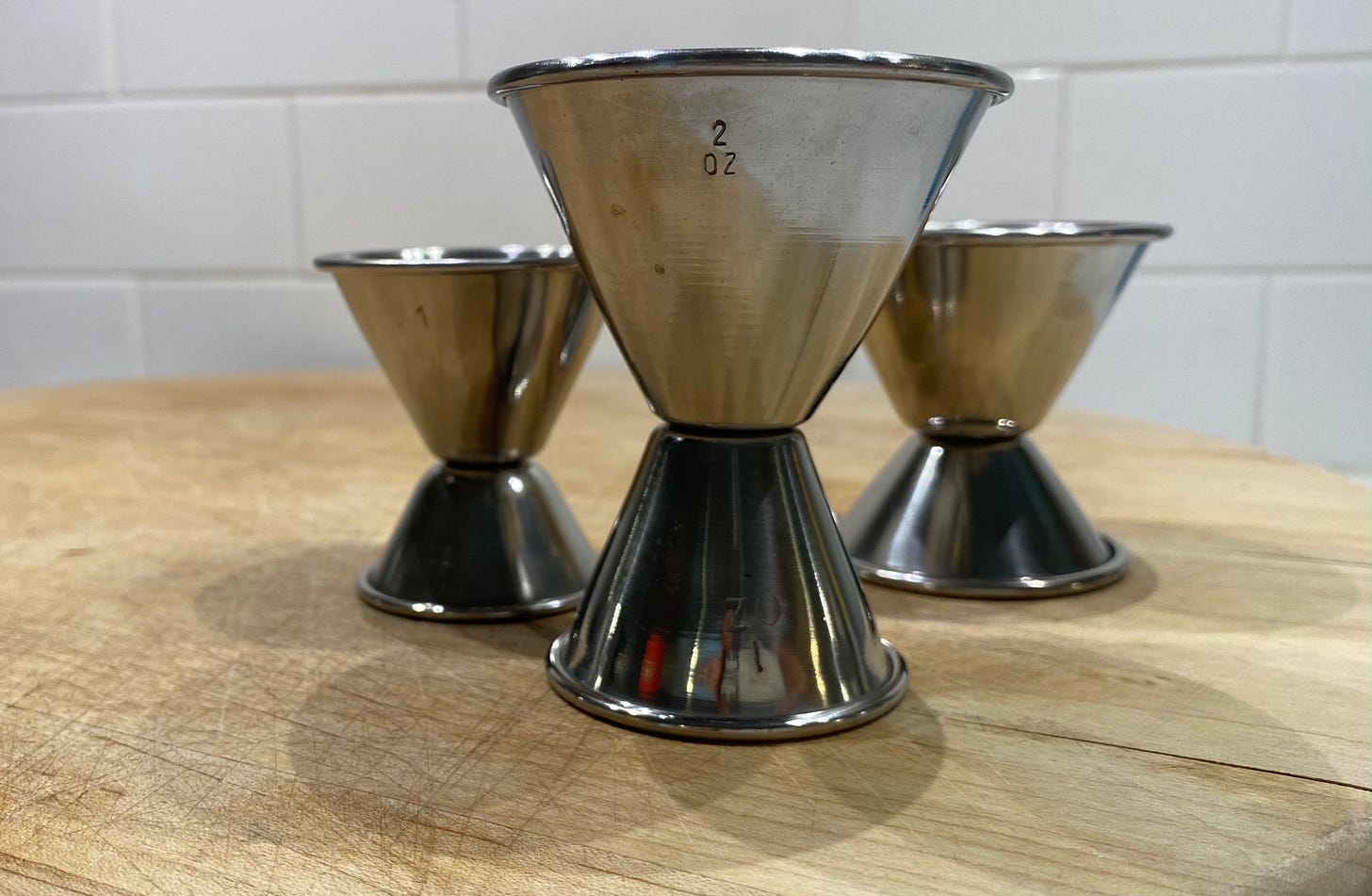 In the last happy hour we discussed the usefulness of owning a smaller martini glass: A drink should be a certain size in part so you don’t overserve yourself and others and also because it will stay cold while you drink it. This week I’d like to emphasize the importance of actually being able to measure your drink.