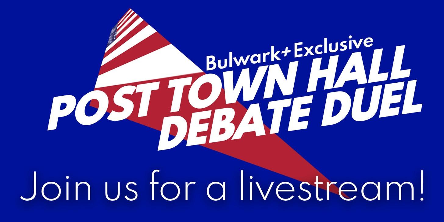 Instead, the candidates are going on ABC and NBC to do dueling town halls. And we’re going to watch them and offer a live post-recap, starting at 9:30 p.m. Eastern tonight.