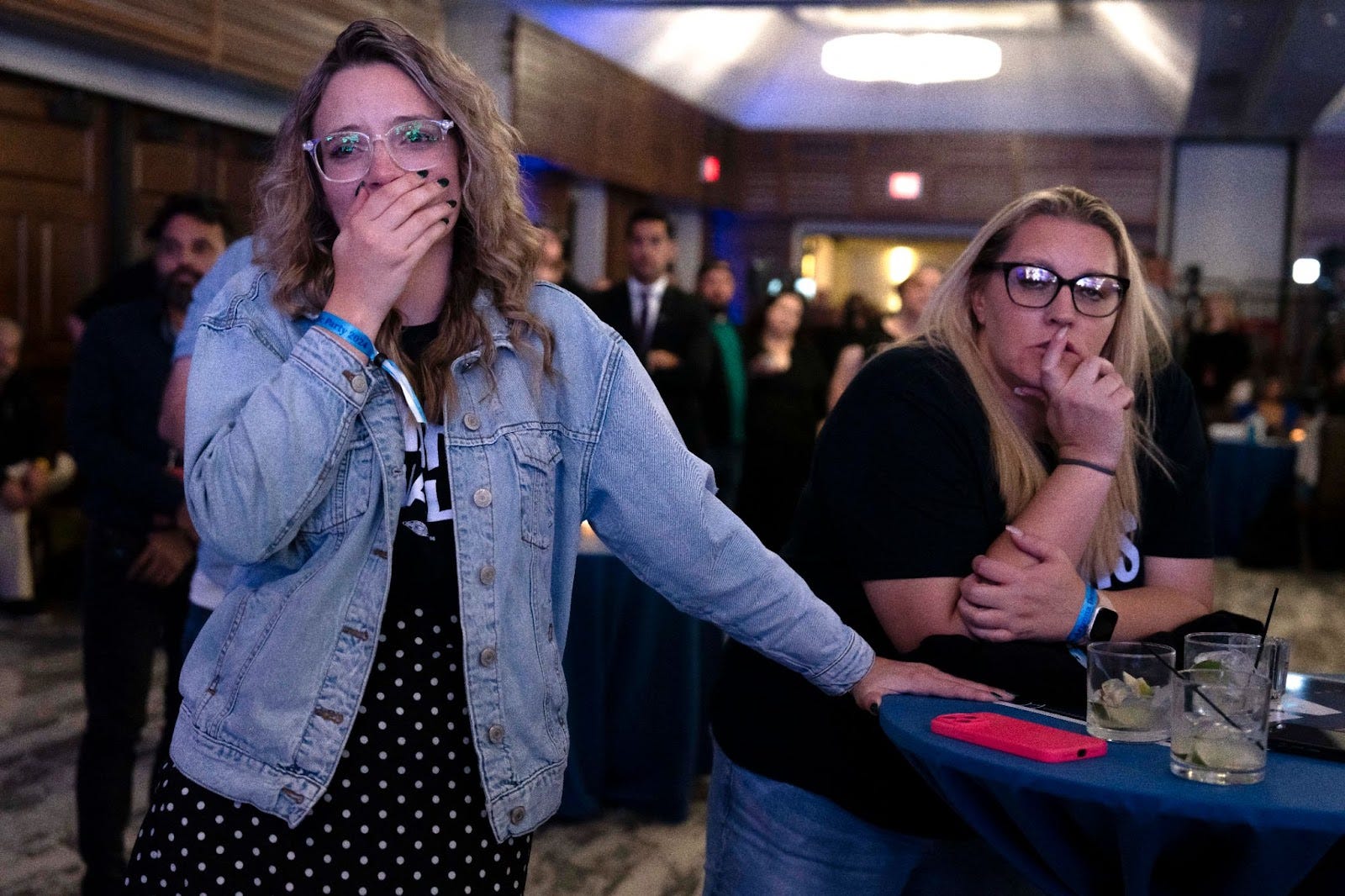 Still, the one thing on everyone’s mind was the presidential election, which over the course of the night went from bad to calamitous. From the outset, Donald Trump victories in key states began eliminating Kamala Harris’s pathways to victory. Remaining attendees watched in anguish as it became clear that Trump would be heading back to the White House.