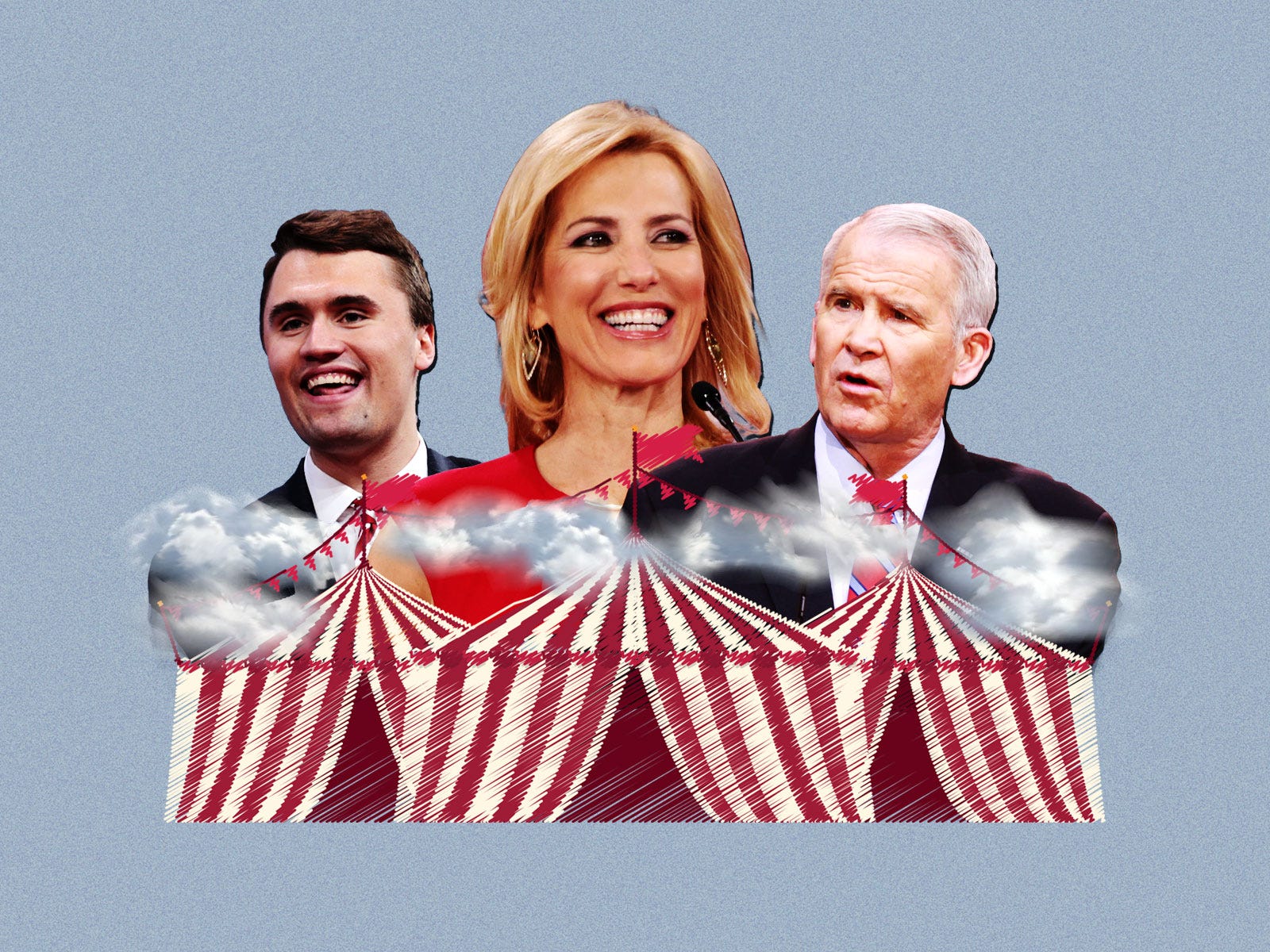 After Ollie North, Scott Walker came across the stage and the crowd seemed to have graciously forgiven his one-time apostasy now that he has bent the knee to Trump. But the thrice-elected former governor of Wisconsin was just a warm-up act for the real future of the Republican party: Charlie Kirk.