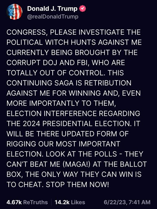 Trump pre-spins 2024 loss. Erick Erickson notes that TFG “is already claiming he'll lose in 2024 and wants you to know its because they stole it again.”