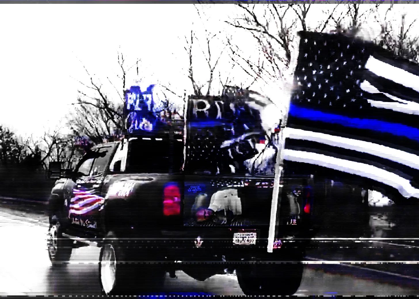 BY NOW YOU HAVE PROBABLY HEARD about the short video that Donald Trump posted on social media on Friday showing a pickup truck decorated with “Trump 2024” and a decal on the tailgate: a life-sized photoshopped image of President Joe Biden hogtied and lying on his side, as if confined in the bed of the truck. The video was filmed the day before in Long Island, New York, where Trump was attending a wake for a police officer.