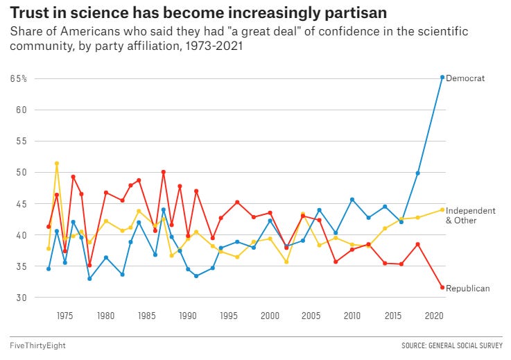 In a 2021 paper published in American Political Science Review, political scientists David C. Barker, Ryan Detamble and Morgan Marietta looked at Republicans’ growing distrust of scientists and other experts. Their research shows that partly due to the education divide — i.e., college graduates prefer the Democratic Party, and white people without a college degree prefer the Republican Party — the divide between those who are pro-intellectualism and those who are anti-intellectualism is more entrenched in party politics.