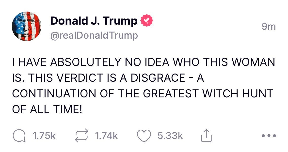 The former president was left to rage at the verdict in ALL-CAPS, and his febrile turd polishers were reduced to insisting that at least he was not a rapist.