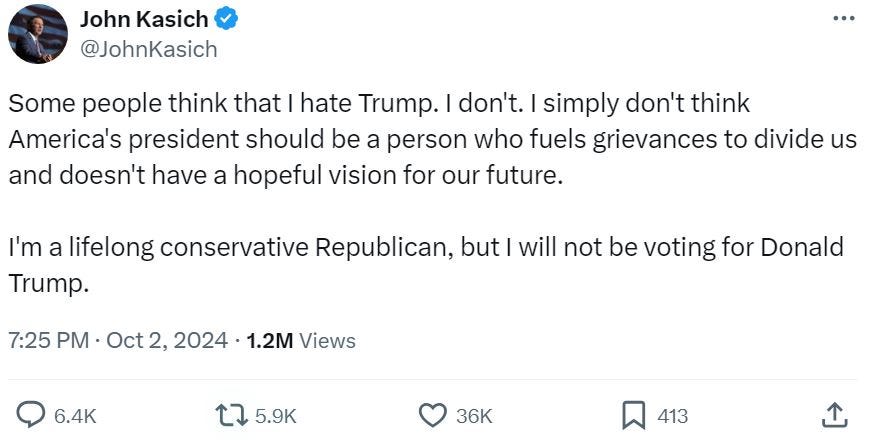 Take former-Gov. John Kasich, for example. Last night he tweeted that he would not be voting for Trump: