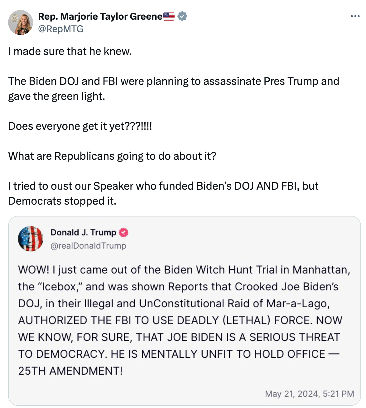 On Tuesday, a Republican member of Congress alleged that the FBI, at the direction of the Department of Justice and President Joseph R. Biden, had ordered an assassination attempt on former president and current nominee Donald Trump.