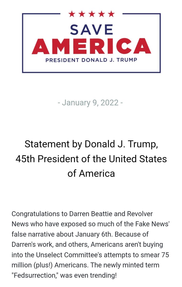 The firing came at the end of a week that started with praise being lavished upon Beattie by the former president. Trump, via a statement, extolled Beattie and his website, Revolver News: