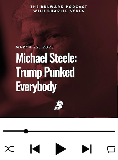 Using a page from his well-worn playbook, Trump framed the narrative about the Manhattan grand jury case on his terms. Plus, the white boy frat party atmosphere at the Tucker Carlson show. Michael Steele joins Charlie Sykes today.