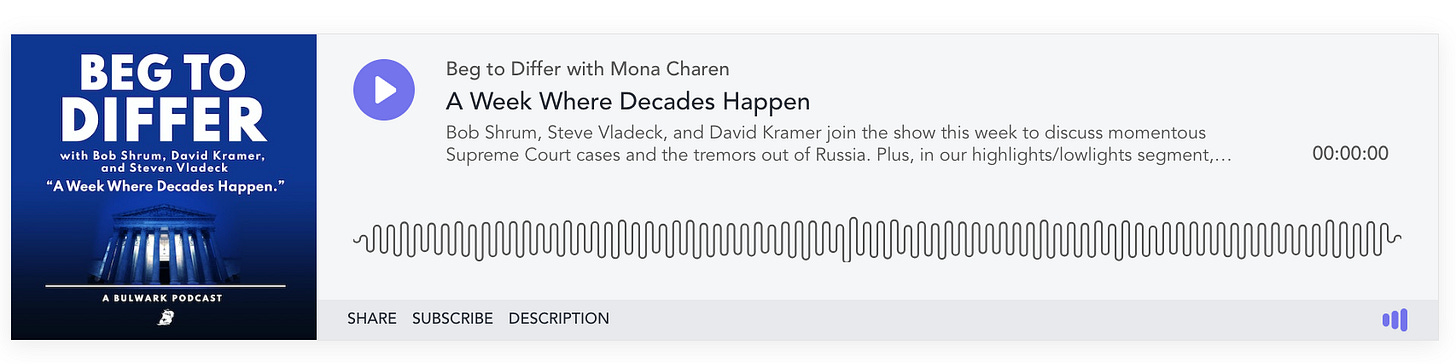 Tech support questions? Email members@thebulwark.com. Questions for me? Respond to this message.