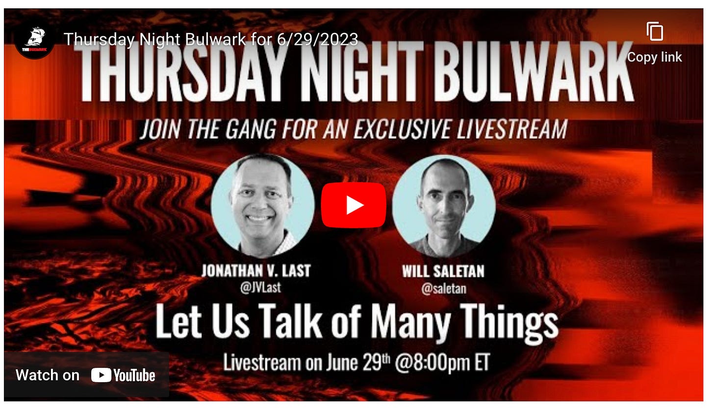 You can support The Bulwark by subscribing to Bulwark+ or just by sharing this newsletter with someone you think would value it.