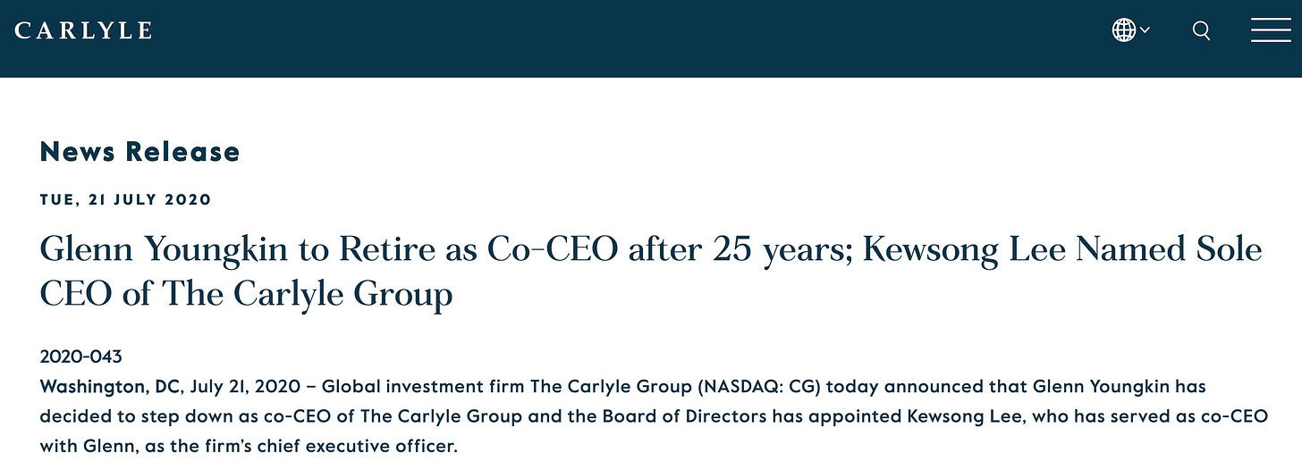 Glenn Youngkin isn’t a professional politician. He’s a worker! Just last year his company threw a big retirement bash after he stepped down as . . . uh, CEO.