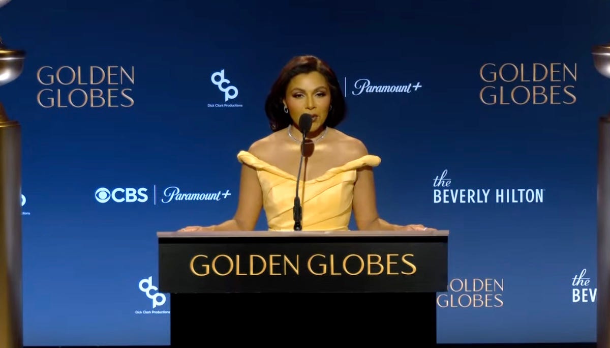 Mindy Kaling announcing the Globes nominees (CBS screenshot)