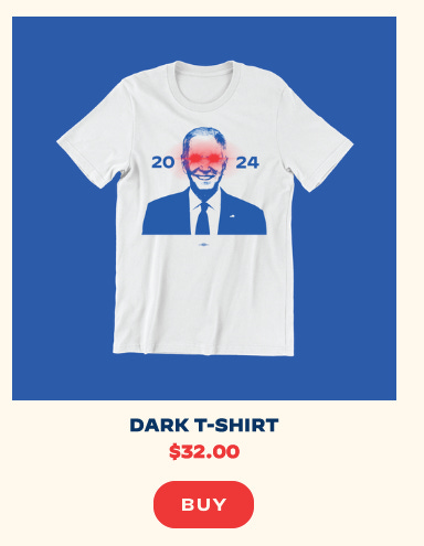 The current president’s campaign store carries a notably meager array of 26 items, including tees, mugs, totes, and stickers. Most just say “Biden/Harris.” A few feature only Harris or pride flags. The most expensive item in the mix is a $65 “Pride Flag Embroidered Crewneck Sweater.” The weirdest are the “Dark” images of Joe Biden with red glowing eyes, a riff off the Dark Brandon meme.