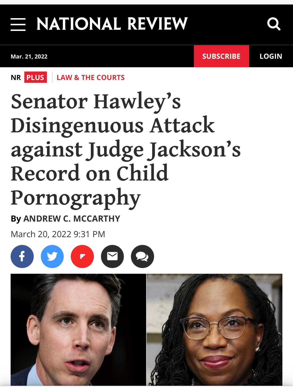 There are a lot of substantive and provocative questions that senators should ask KBJ (George Will has a good rundown), but they are likely to be overshadowed by the clickbaity performance of Missouri’s Josh Hawley.