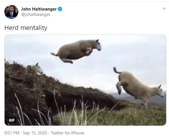 Presumably, he meant to say herd immunity. But "herd mentality," turns out to be a useful addition to our political lexicon.