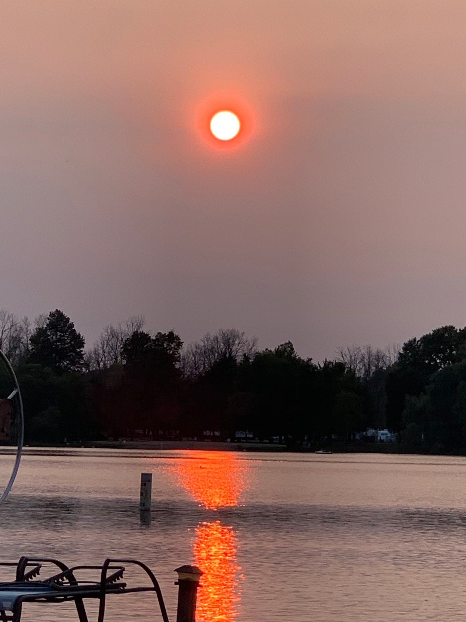 Here is last night's sunset in Wisconsin, filtered by smoke from the fires in the West.