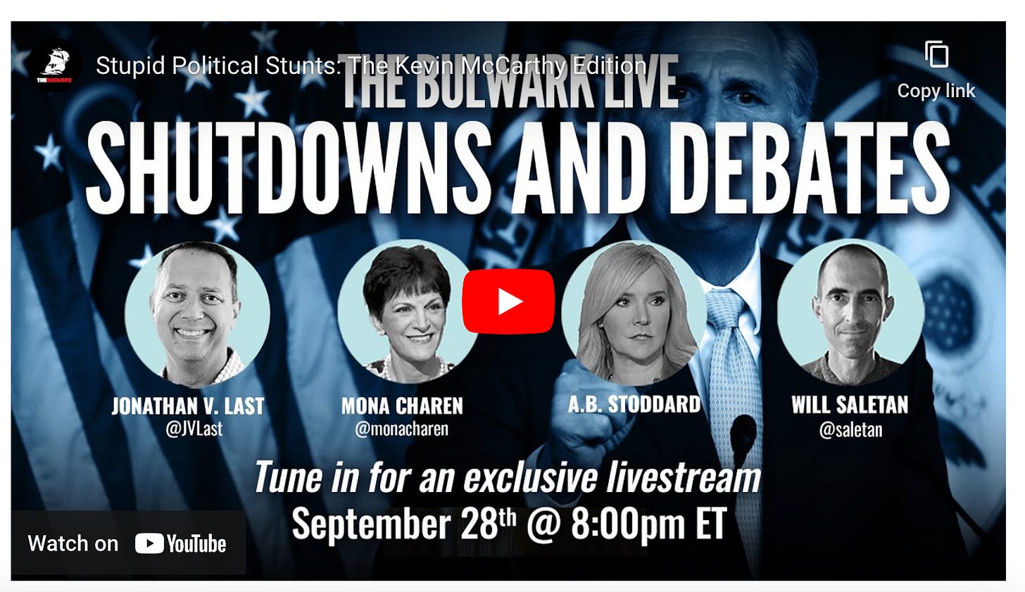 You can support The Bulwark by subscribing to Bulwark+ or just by sharing this newsletter with someone you think would value it.