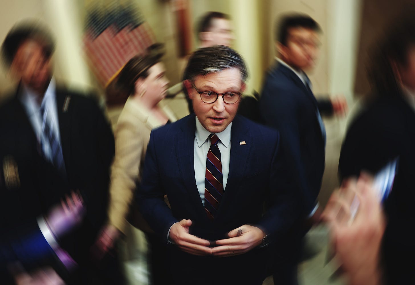 This was the theme of the chamber’s proceedings on Tuesday evening, when Republicans announced their slate of impeachment managers prior to holding the vote on removing Homeland Security Secretary Alejandro Mayorkas. The vote failed in spectacular fashion, with three Republicans1 breaking ranks and a convalescing Democratic representative—Al Green of Texas, recovering from a recent surgery—making a surprise appearance in a wheelchair and hospital scrubs to vote against the resolution. (Even habitual absentee Rep. Dean Phillips made it in the end, although he had missed the procedural rule vote that brought the Mayorkas impeachment to the floor earlier in the day.) Making things worse on the PR front, Speaker Mike Johnson himself announced and gaveled out the failing tally, which any staffer with the most basic understanding of optics should’ve prevented from happening by pushing another representative to do it in his place.2