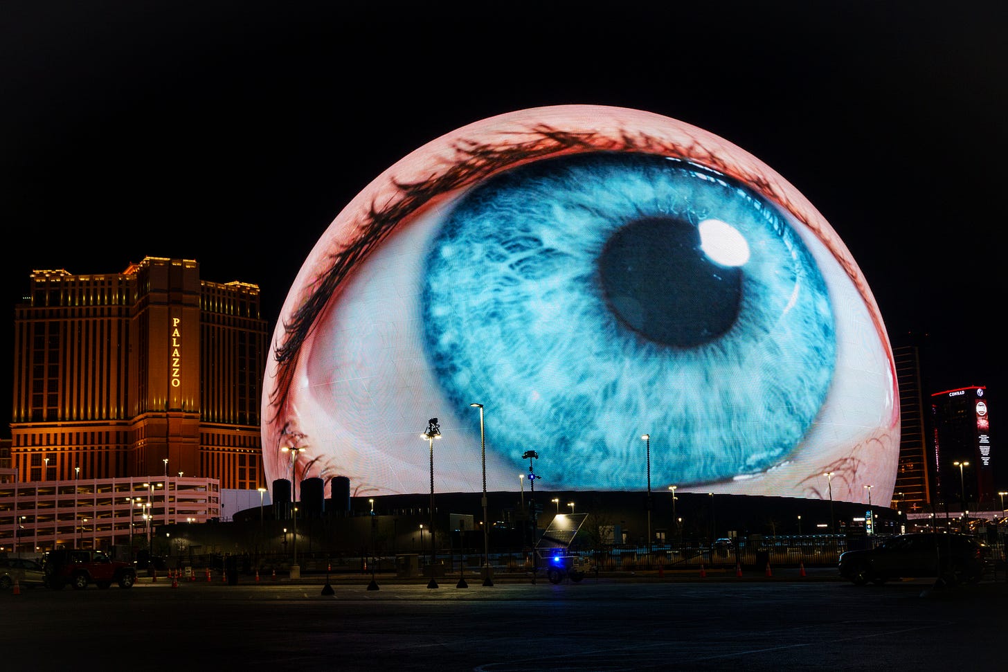 I’M A BIG FAN OF THE SPHERE, the giant snow-globe-shaped monstrosity in the heart of the Las Vegas Strip. I love the gaudiness of it and I admire the technological feat of creating a building-sized 16K LED screen. It’s a $2.3 billion monument to human excess, a fact only heightened by the hilarious incongruence of the one movie truly shot for the screen is a blisteringly anti-human nature documentary by Darren Aronofsky about how we’re a plague that should flee Earth so it can heal from all we’ve done to it. I was literally there last weekend, watching Aronofsky’s Postcard from Earth for a second time. That’s how much I love the Sphere.