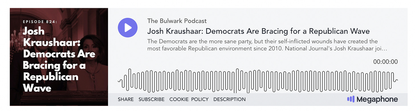 Bulwark+ members can listen to an ad-free version of these podcasts on the player of their choice. Learn more at Bulwark+ Podcast FAQ.