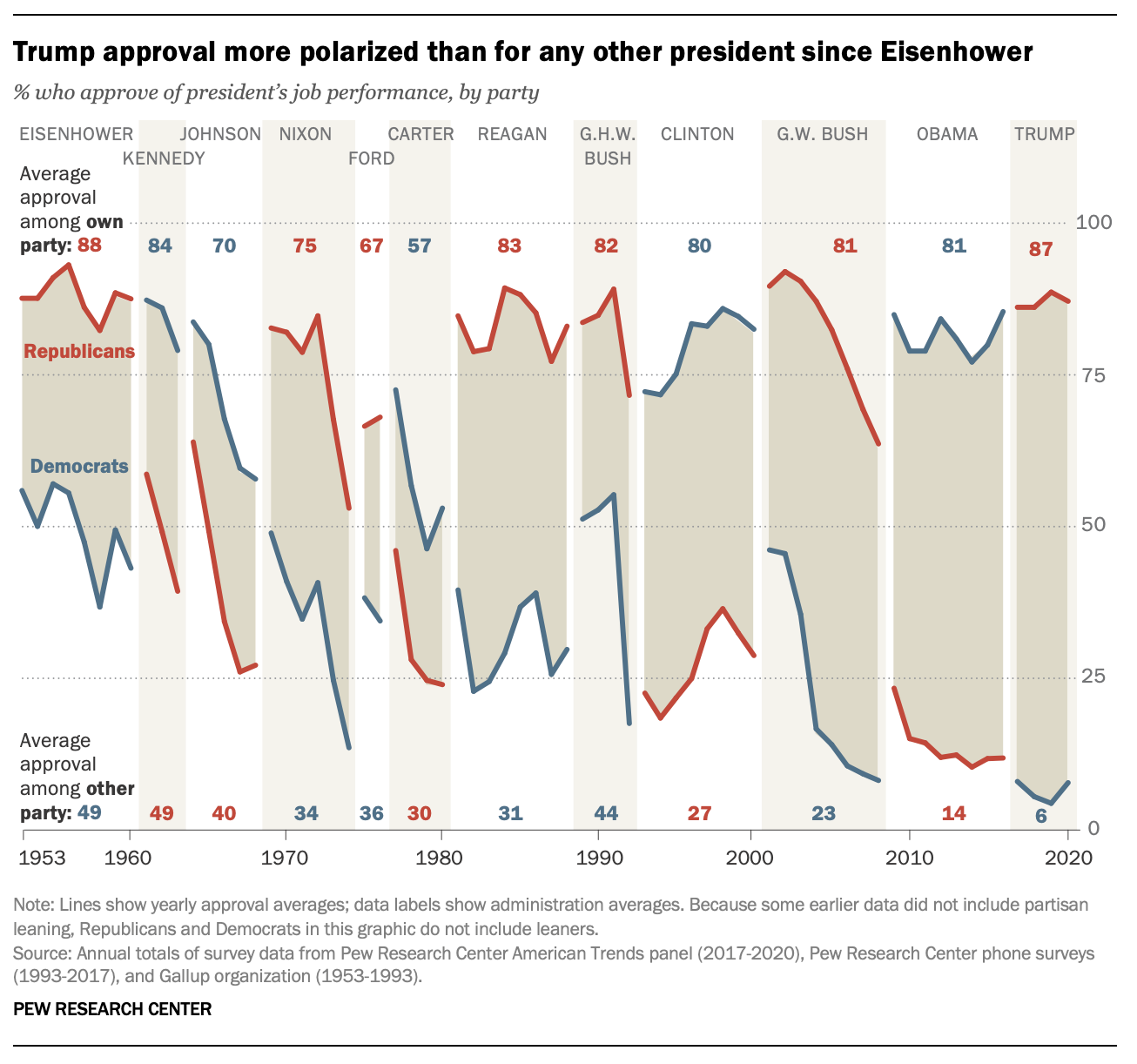 This chart on presidential approval ratings by party ID tells two stories about polarization.
