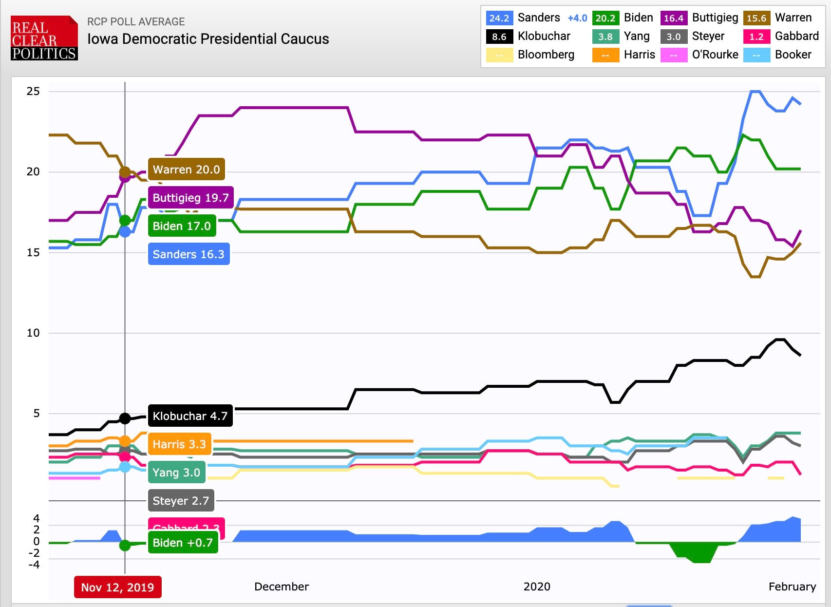 The next tranche of finishers is likely to be Elizabeth Warren and Pete Buttigieg, with support in the mid-teens. It is possible that Amy Klobochar will get to the mid-teens, but unlikely.