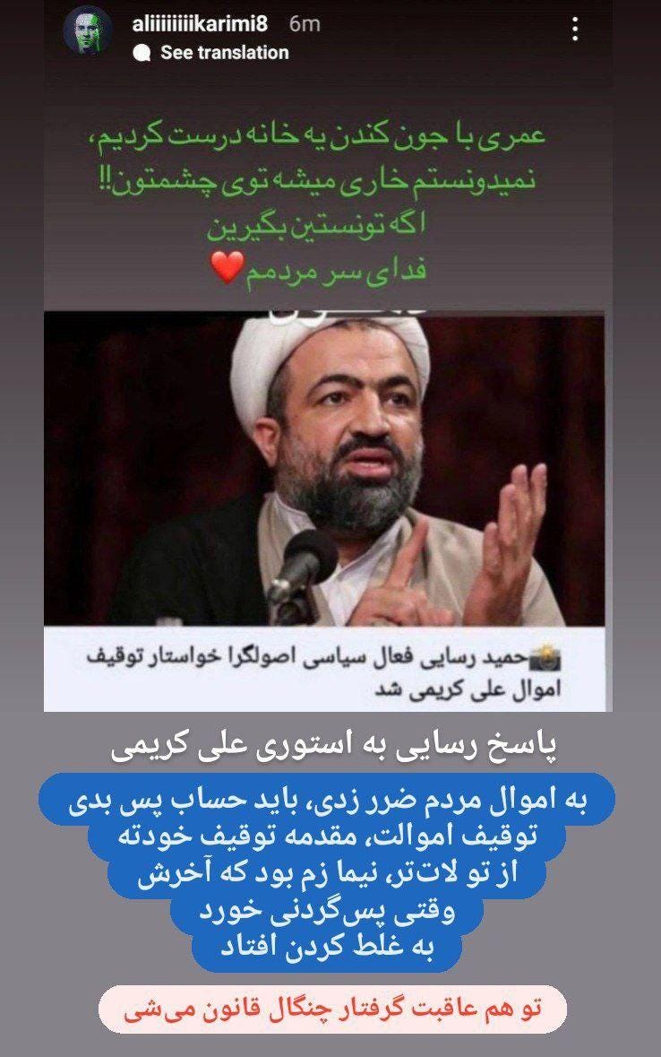I ran out of patience. Worst comes to worst, I’ll be kicked out [of the team], a sacrifice for one strain of hair of Iranian women. This [Instagram story] won’t be deleted whatsoever. They can do whatever they want. Shame on you who kill people so easily. Long live the Iranian women.