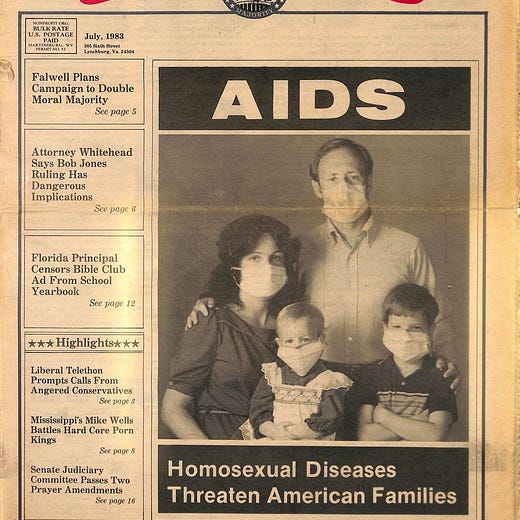 Here’s a headline from the “Moral Majority Report,” Jerry Falwell’s magazine: