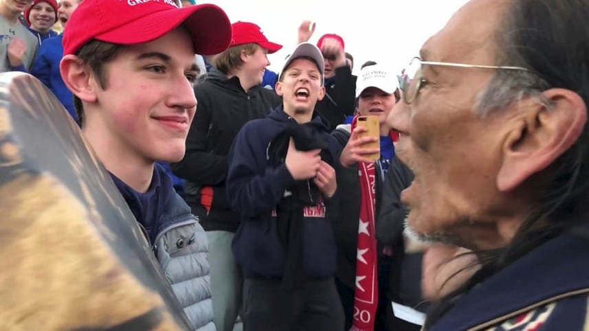 The catalyst for Isaac’s piece is the Lincoln Memorial incident that took place last weekend, involving a group of MAGA-hatted Kentucky Catholic school kids, a handful of members of the radical Black Israelites sect, and Native American activist Nathan Phillips.