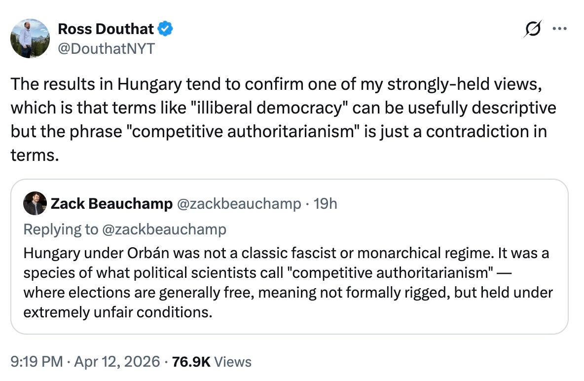 Magyar won because Hungarian voters lived inside Orbánism without insulation. They felt it in their wallets, their courts, their newsrooms. The suffering was direct and unmediated. Enough American voters seem to have a cushion (of ignorance) between themselves and the consequences of their choices, a media environment that buffers, reframes, and algorithmically replaces lived experience with the next outrage cycle, that the same unmediated education never seems to fully land.